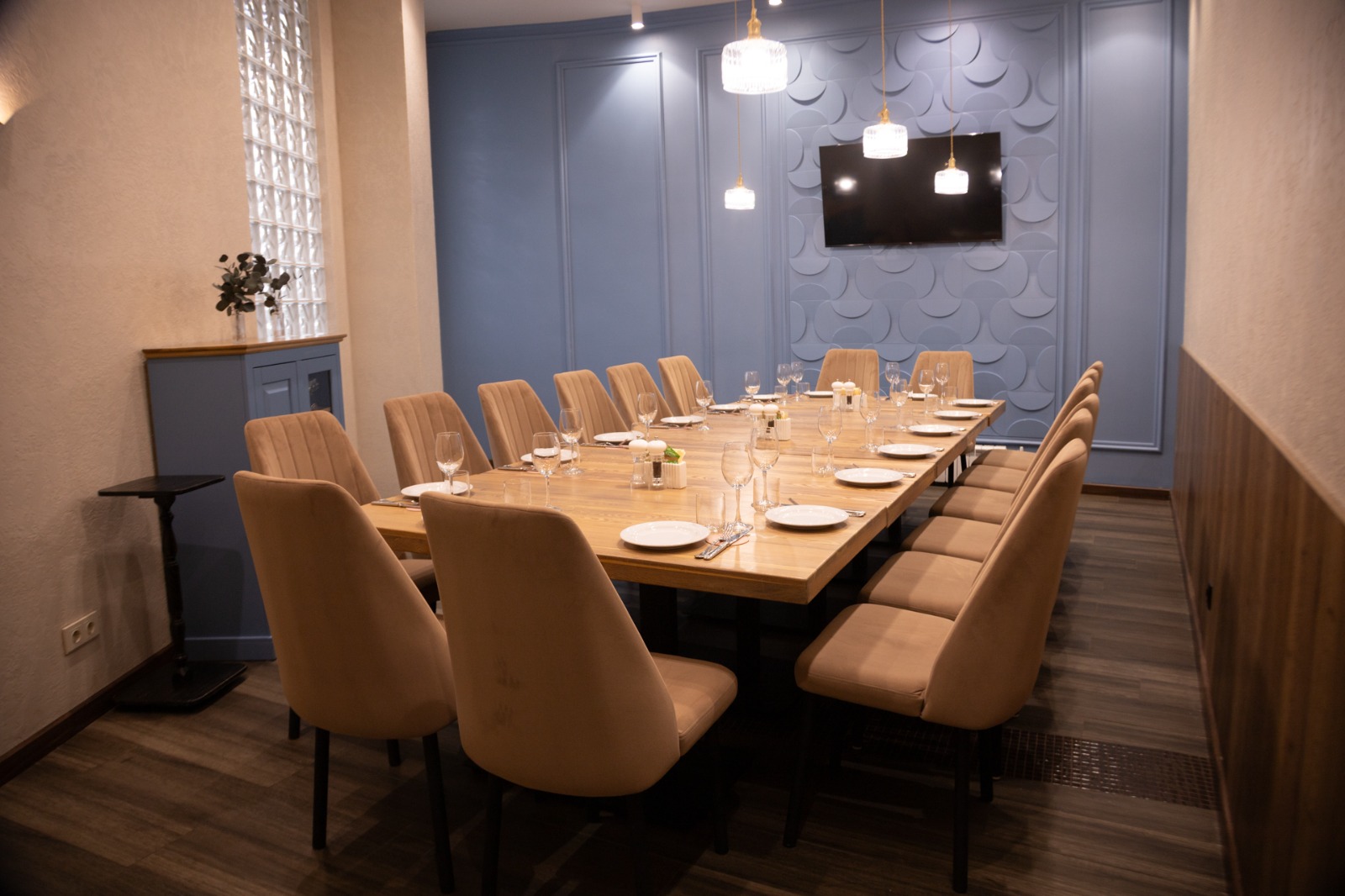 Отдельный зал, один общий стол, приватная атмосфера для встреч