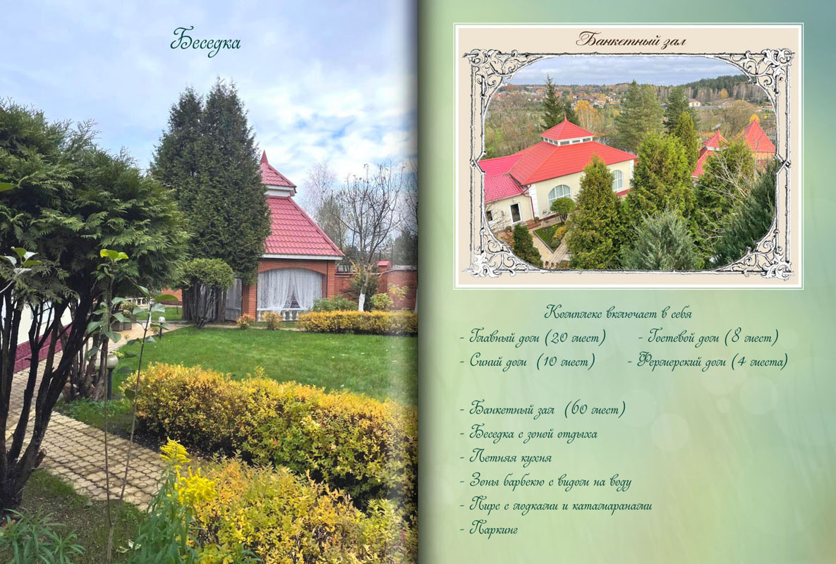 У нас есть 4 дома, для 40 гостей одновременно и красивый банкетный зал