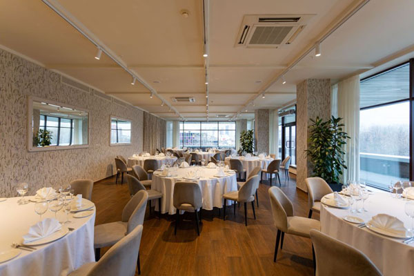 Зал «Панорамный» – идеальное место для проведения различных мероприятий: от камерных торжеств до полноценных банкетов. Зал позволяет разместить до 80 гостей в формате фуршета и до 50 гостей в формате банкета.