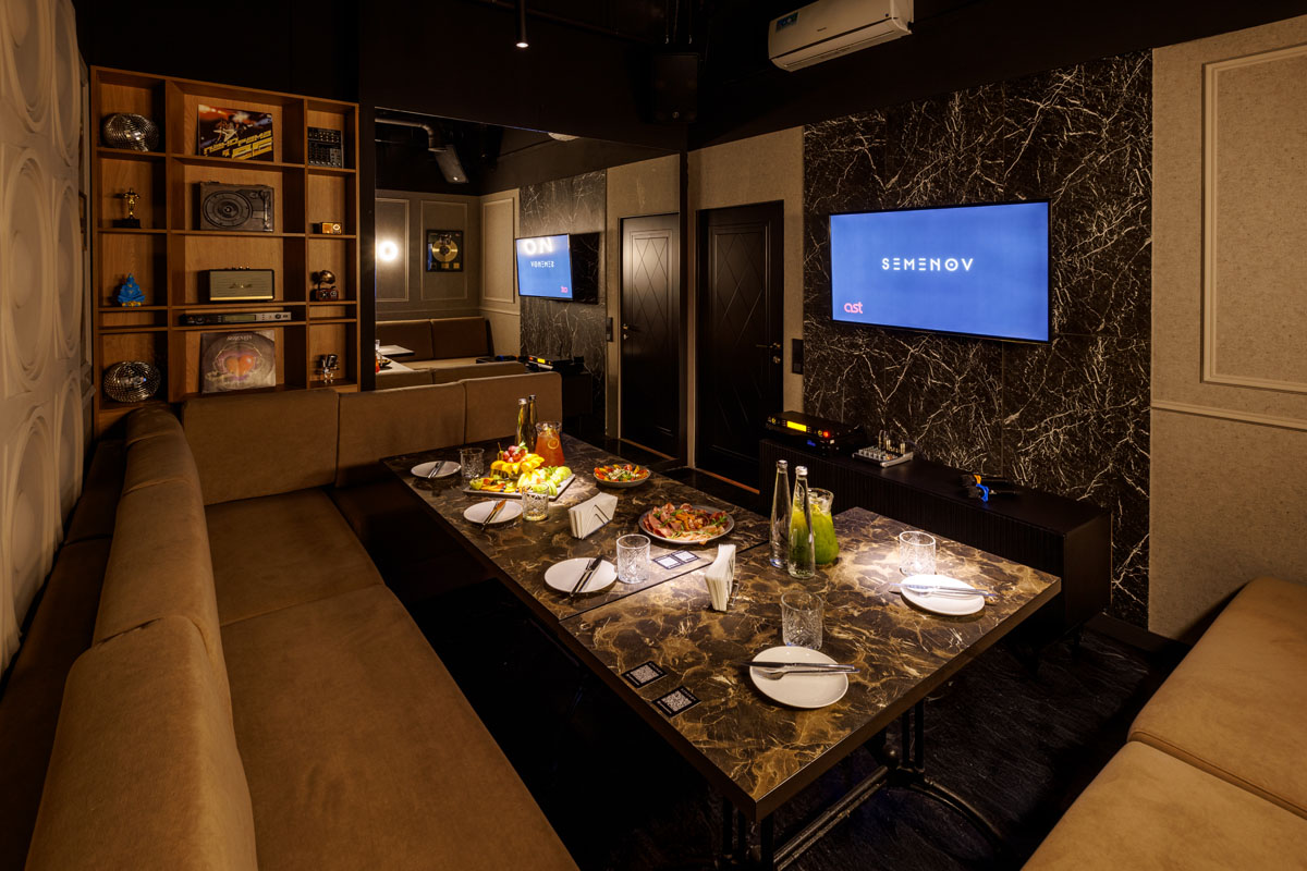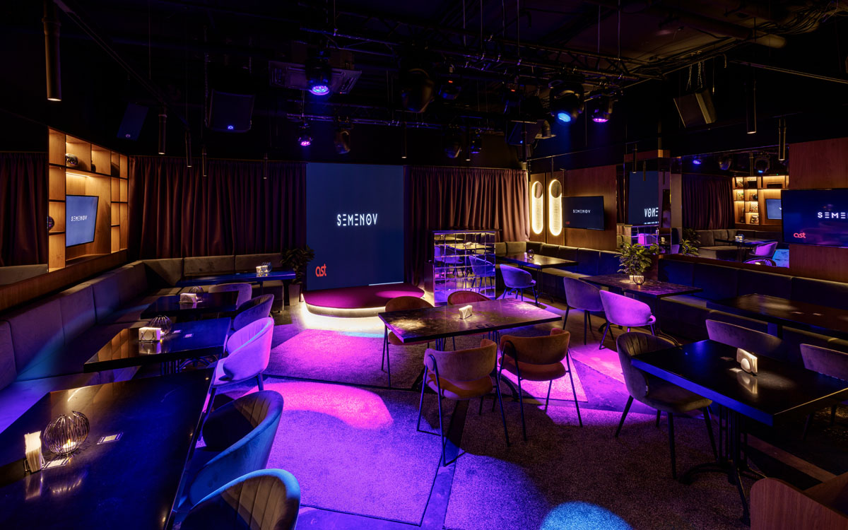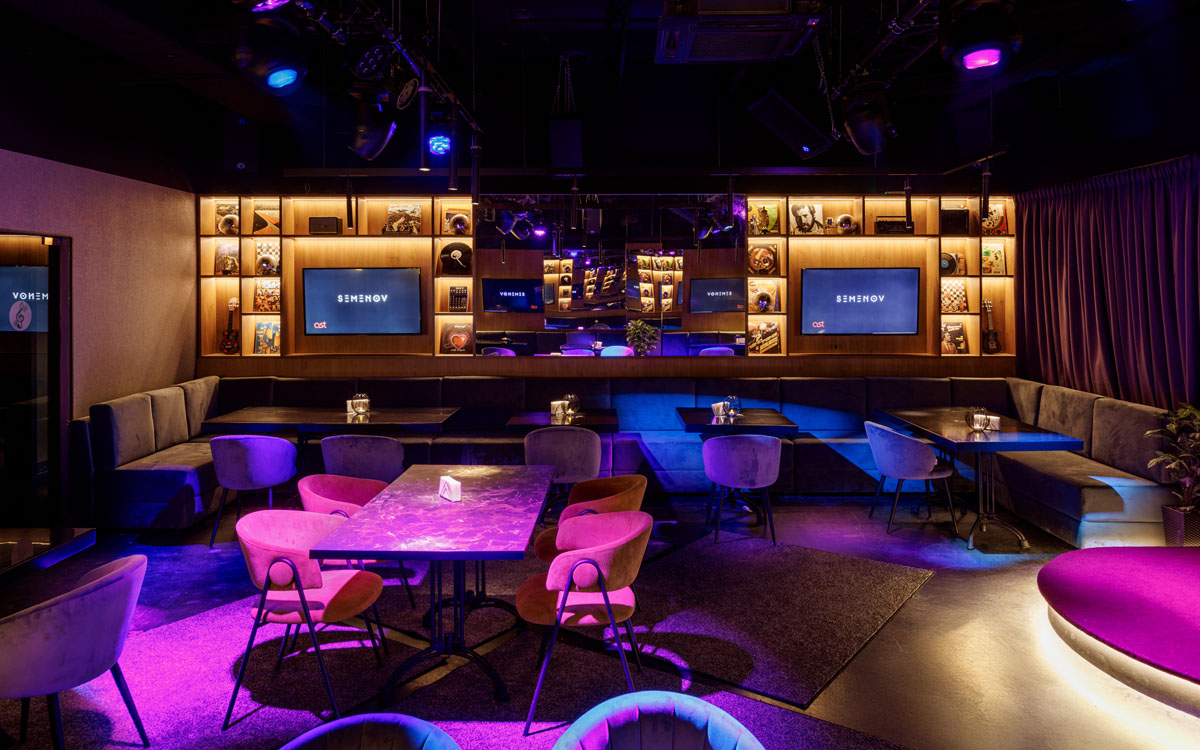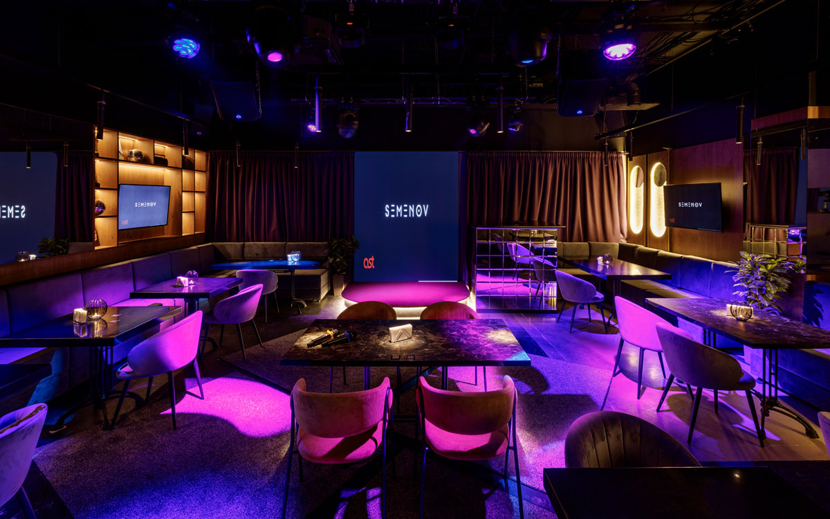 SEMENOV в Столешниковом переулке — стильный караоке-бар в центре столицы, где можно отпраздновать любое событие: от корпоратива до девичника. Здесь профессиональный звук, сцена в общем зале, авторские коктейли и уютные VIP-залы. Заведение располагает общим залом на 70 гостей и 8 отдельными VIP-комнатами от 8 до 20 человек. Система-караоке AST, телевизоры, звук уже включены в стоимость аренды. |