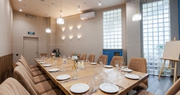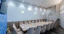 Закрытый зал, один общий стол или банкетная рассадка, приватность для встреч.