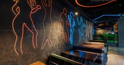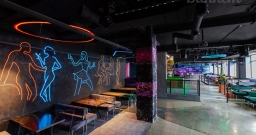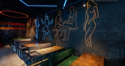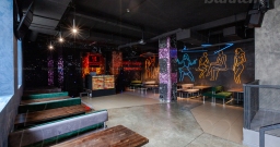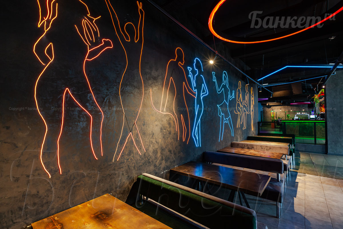 В зоне с танцполом по периметру расположены прямоугольные столы с диванами, общая вместимость до 70 персон.