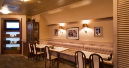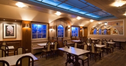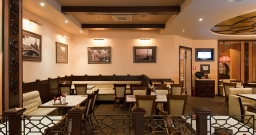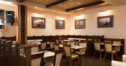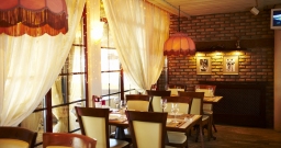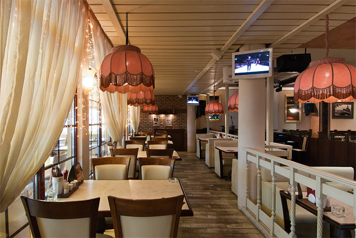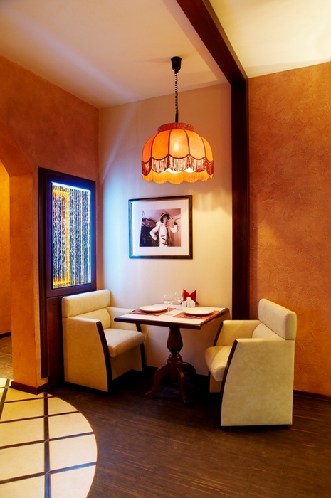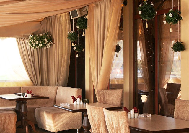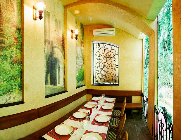 Интерьеры всех залов ресторана выполнены в европейском стиле, полны хорошего вкуса и респектабельности. Оригинальными элементами декора банкетного зала являются ложные окна с видами французской Каталонии и фрески в стиле Дали. В интерьере VIP-зала присутствуют итальянские нотки и мотивы французского Прованса. Банкетный зал ресторана "Дон Иван" рассчитан на 40 человек, VIP-зал – на 12 персон, а на летней веранде легко разместится 60 гостей. Кухня европейская, русская и авторская. Шеф-повар ресторана «Дон Иван» - Зобнев Валерий, член Национальной Гильдии шеф-поваров России. Отдельный раздел меню ресторана "Дон Иван" посвящен стейкам и блюдам, приготовленным на гриле. Собственный кондитерский цех ресторана изготавливает на заказ праздничные, свадебные, детские и корпоративные торты любой сложности. При заказе банкета мы подберем индивидуальное меню или приготовим для Вас специальные банкетные блюда. Персонал ресторана имеет большой опыт в проведении торжеств любой сложности. Наши официанты предоставят Вам прекрасный сервис и обслуживание. В ресторане имеется сцена с профессиональной световой и звуковой аппаратурой. |