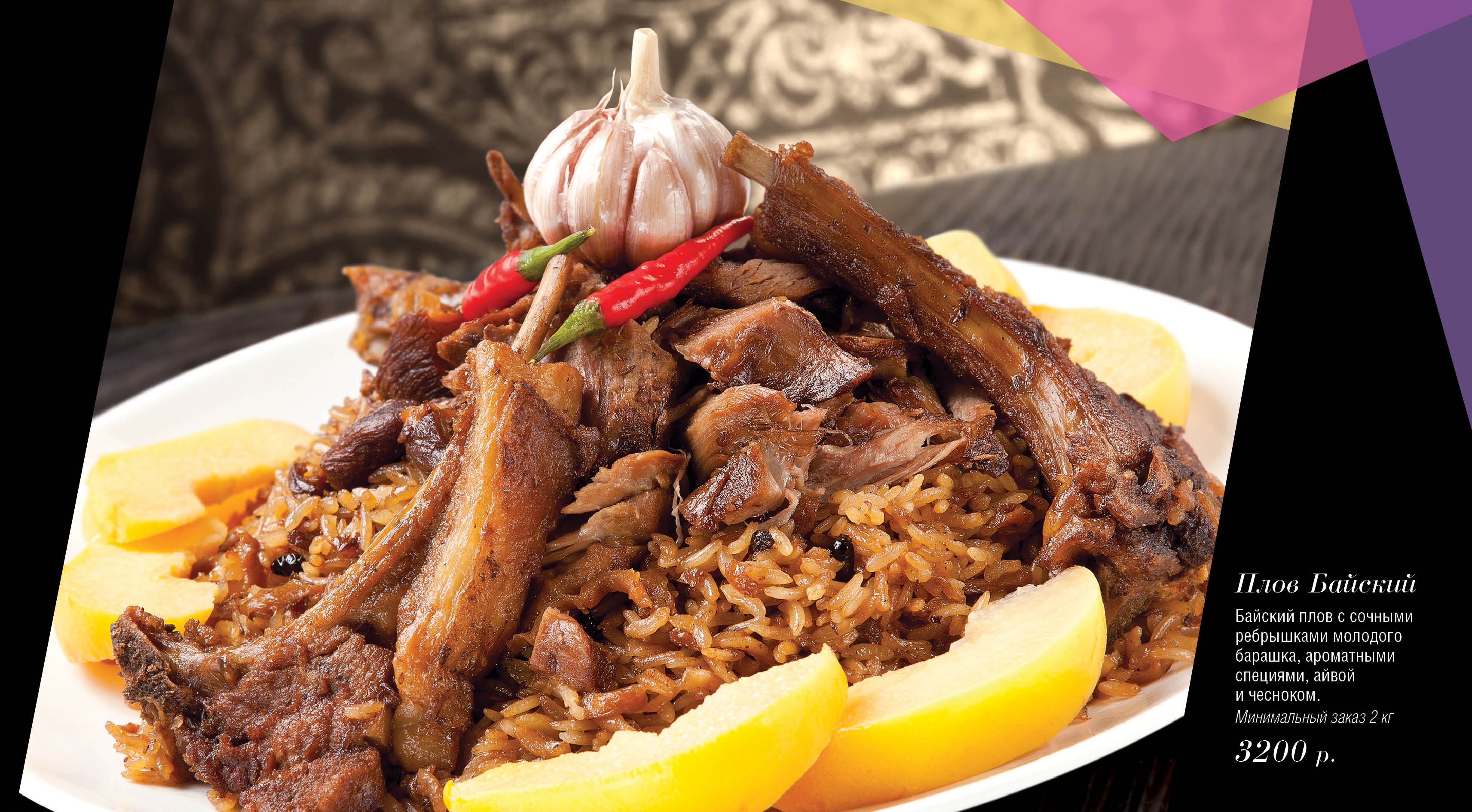 Мы ревностно соблюдаем правила настоящей узбекской кухни: если самса – то только из тандыра, с мясом молодого барашка и курдюком или с тыквой и специями. Если манты – то собственной ручной лепки, из тончайшего теста, с рубленным ножом мясом, приготовленные на пару. Если плов – то с бараниной, желтой узбекской морковью и барбарисом, приготовленный в казане.