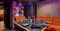 К вашим услугам просторный общий зал со сценой и 8 VIP-залами караоке на компании от 6 до 20 человек.