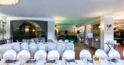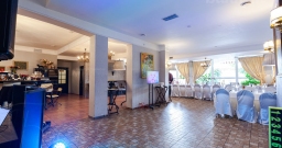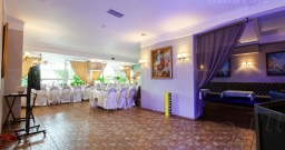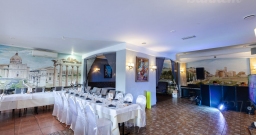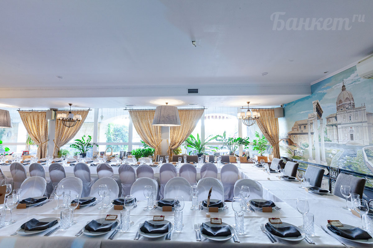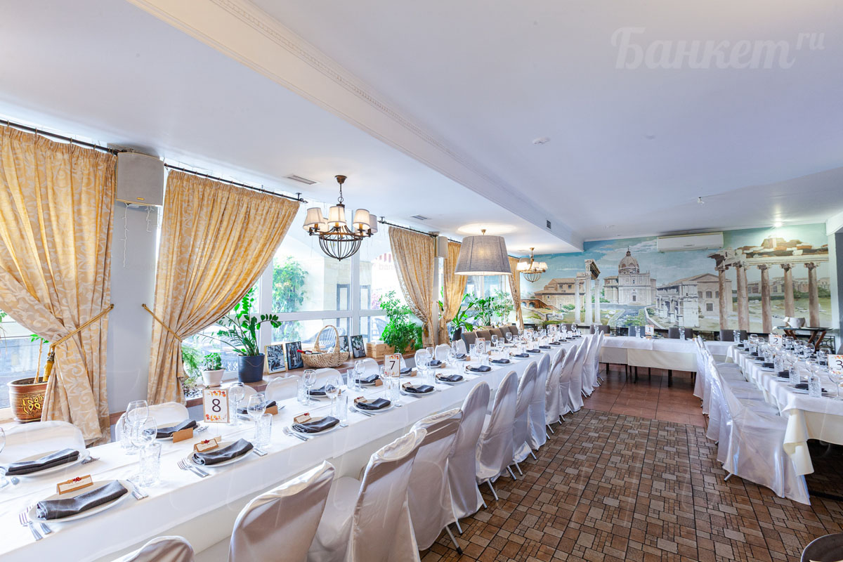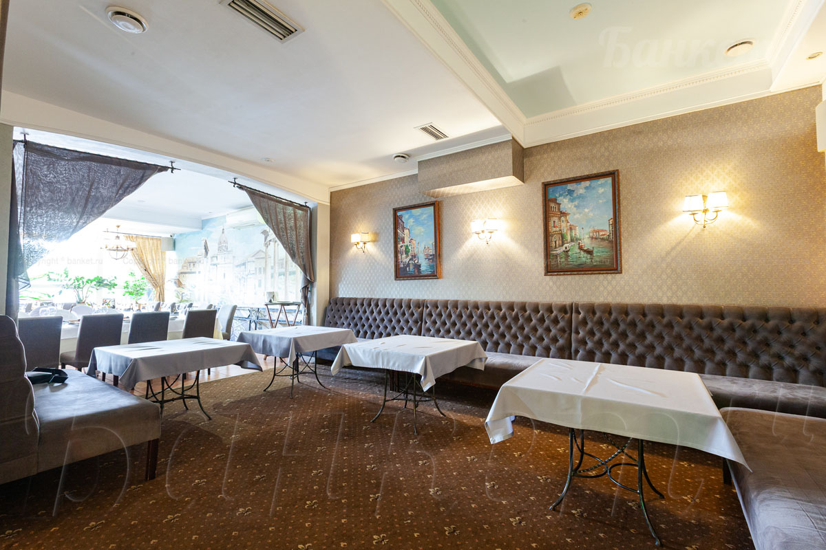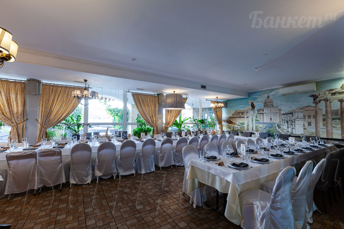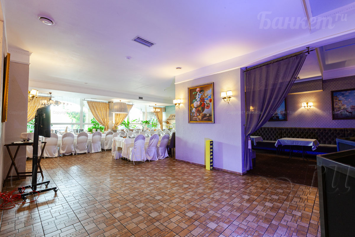Банкетный зал ВИА Романо посадка до 60 человек. Фуршетная зона до 30 человек. Место для ведущего, танцпол, место под аппаратуру. , переносные стойки под тв, летняя веранда, парковка, детская комната, возможность организации детских праздников, живая музыка по пятницам, концерты.