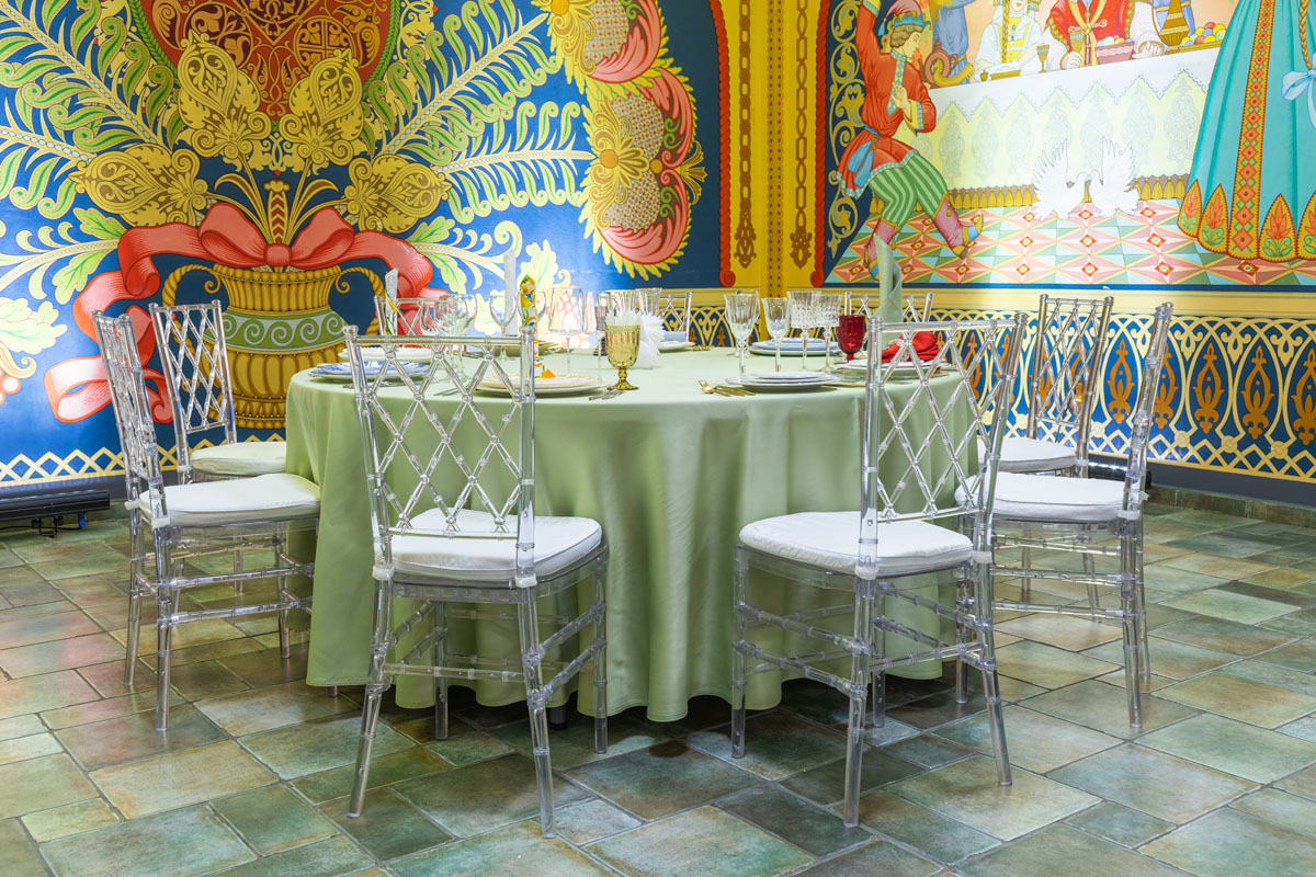 Декоративное оформление банкетного зала позволяет идеально вписаться в концепцию мероприятий «А-ля рус», «Русские сказки», «Этнические проекты» и многие другие мероприятия.