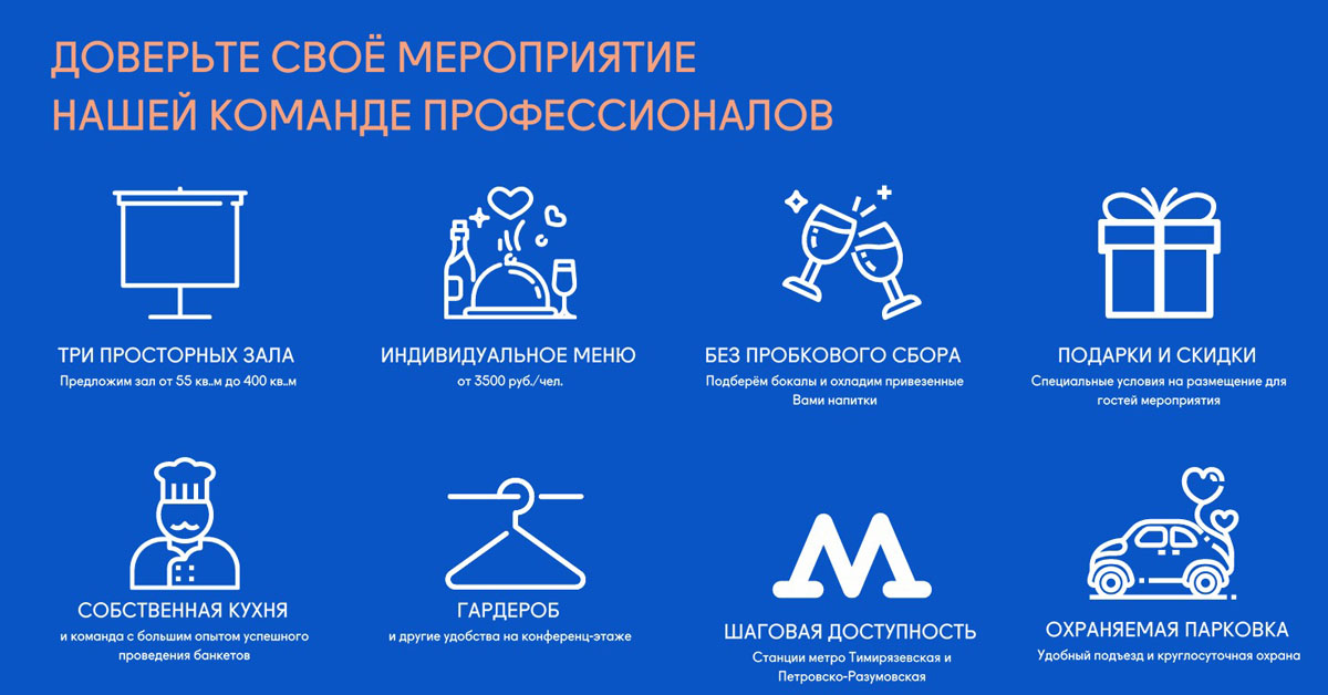 На время проведения вашего мероприятия заведение полностью закрывается и работает только для вас и ваших гостей – без арендной платы.