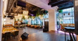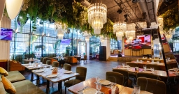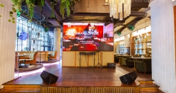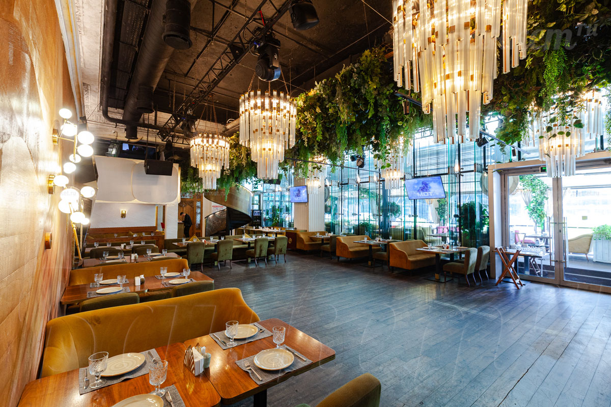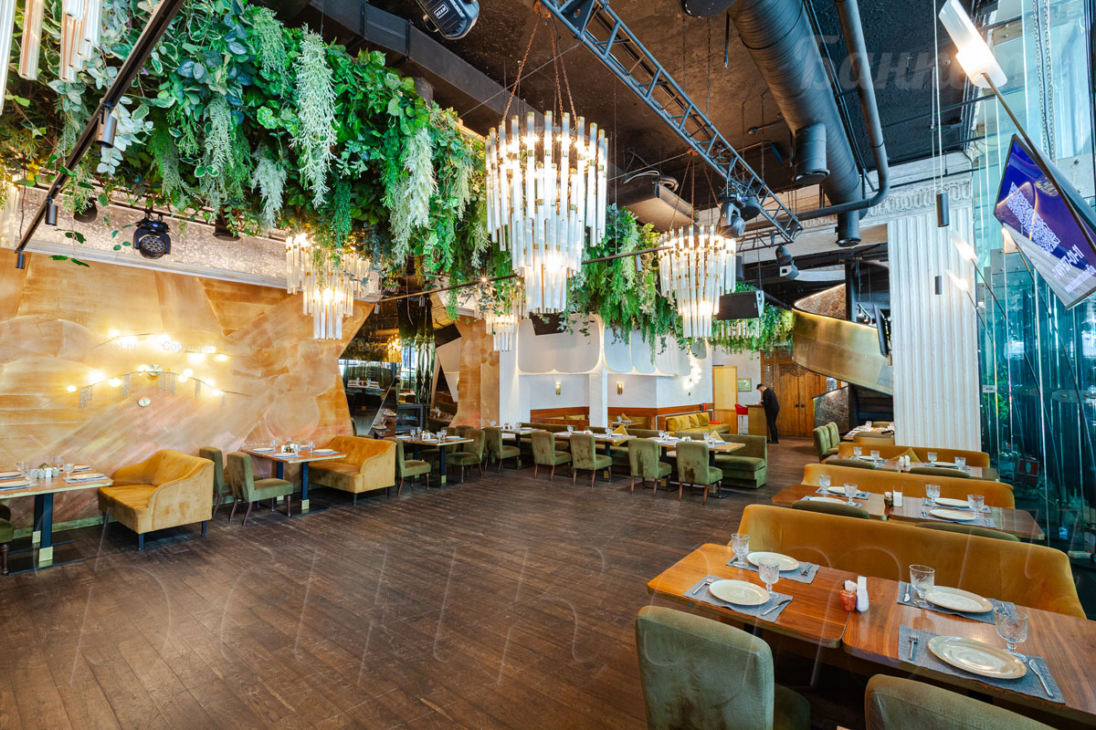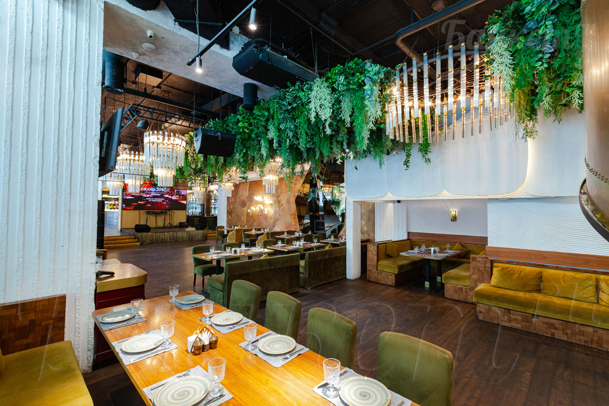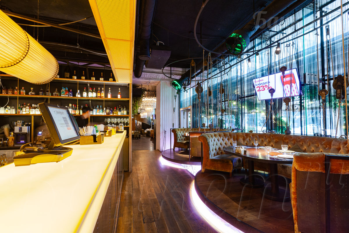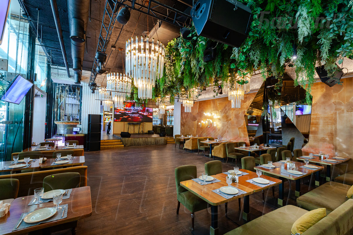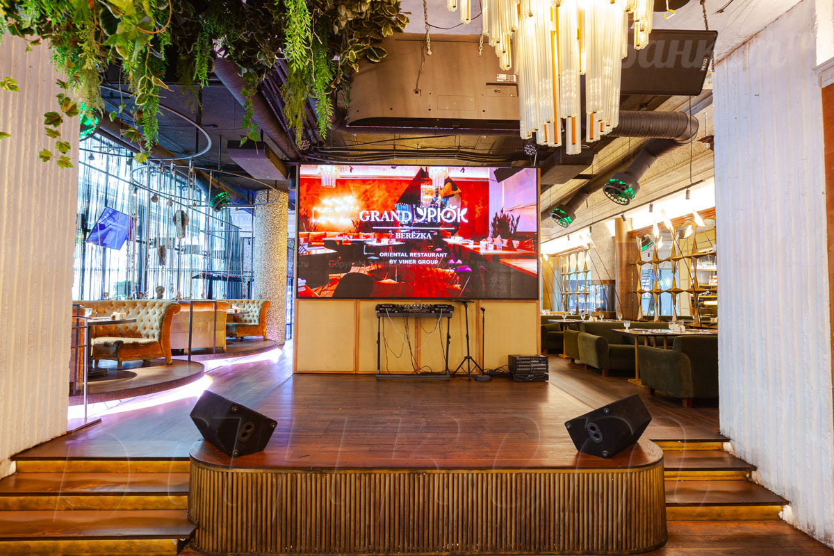 Професстогальное звуковое и световое оборудование, большой LED экран на сцене, ТВ по периметру зала.